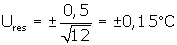 A incerteza de medição será o desvio padrão da distribuição retangular com r = 0,5 °C (resolução), ou seja: