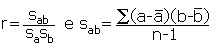 onde sa e sb representam o desvio padrão amostral das variáveis a e b, respectivamente.